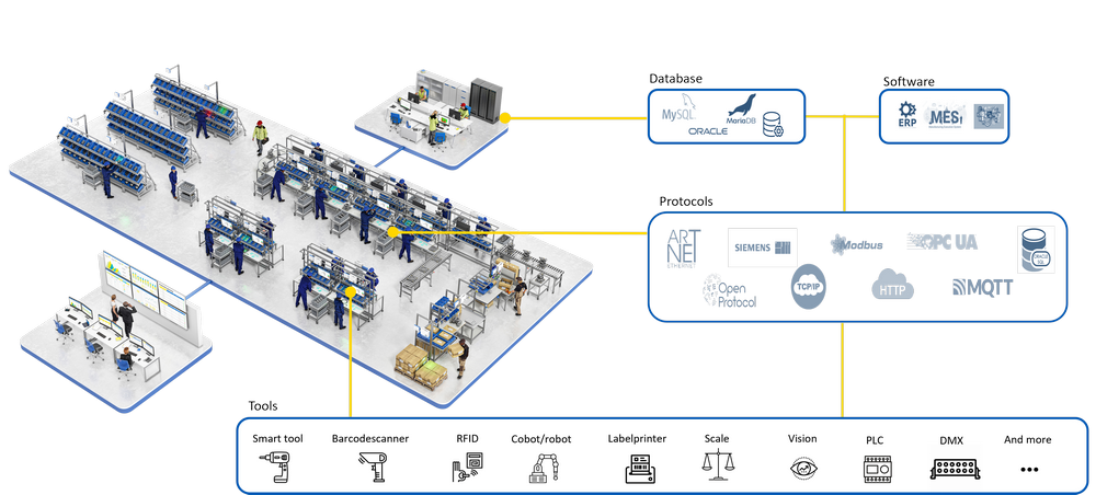 Arkite’s Operator Guidance Platform comes with a flexible Application Programming Interface (API) that allow swift communication with other applications in your software ecosystem, like MES and ERP systems.